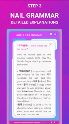 Jak I Speak przyspiesza Twoje postępy? Każda lekcja to starannie opracowany zestaw ćwiczeń, którego celem jest naturalne przyswojenie gramatyki i słownictwa poprzez mówienie. Dzięki wbudowanemu algorytmowi powtórzeń rozłożonych w czasie, skutecznie przeniesiesz nowo poznany materiał z pamięci krótkotrwałej do długoterminowej. Kurs I Speak koncentruje się na kluczowych 400 najczęściej używanych słowach i 40 formach gramatycznych, które stanowią fundament 50% codziennych koreańskich konwersacji, maksymalizując efektywność nauki. Całość materiału ułożona jest w 20 angażujących lekcji dialogowych, które poruszają tematy bliskie fanom K-popu, K-dram i turystom, czyniąc naukę przyjemną i niezwykle praktyczną.