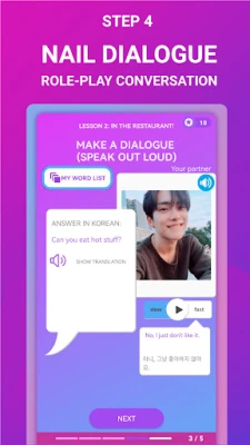 Czy marzysz o swobodnej konwersacji po koreańsku, ale tradycyjne metody nauki sprawiają, że czujesz blokadę w mówieniu? Z aplikacją I Speak przełamiesz barierę językową i zaczniesz aktywnie posługiwać się koreańskim w zaskakująco krótkim czasie. I Speak to innowacyjny kurs skoncentrowany wyłącznie na rozwijaniu praktycznych umiejętności mówienia, bez zbędnych quizów czy fiszek. Skupiamy się na intensywnych ćwiczeniach konwersacyjnych, które pozwolą Ci opanować język koreański i zyskać pewność siebie w rozmowach. Przygotuj się na płynną komunikację w zaledwie 2-4 miesiące, niezależnie od tego, czy jesteś początkujący, czy masz już podstawy na poziomie TOPIK 1-2.