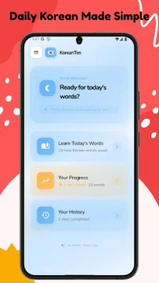 KoreanTen to Twoja codzienna dawka koreańskiego słownictwa. Ucz się 10 nowych słów dziennie za pomocą inteligentnych fiszek i śledzenia postępów. Idealna dla początkujących, oferuje ponad 500 słów w 50 tematach. Buduj solidne podstawy krok po kroku, bez przeciążenia.
